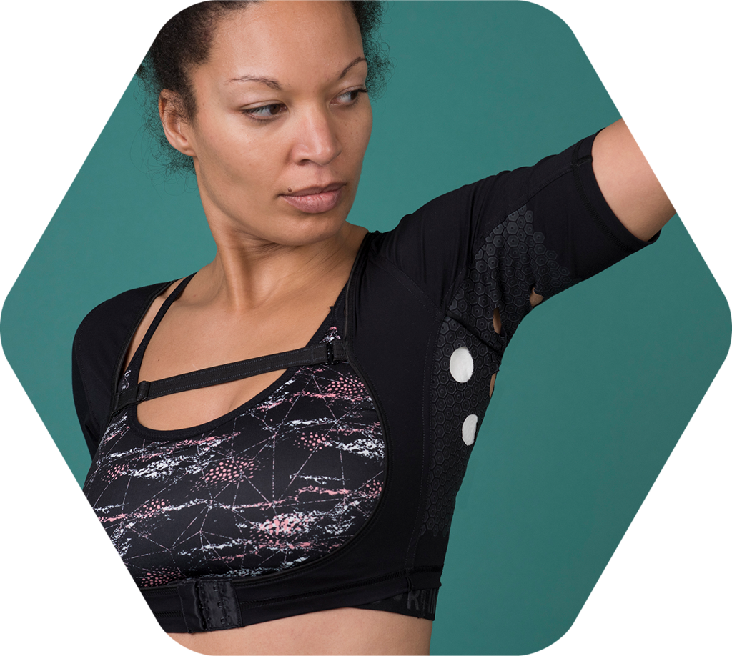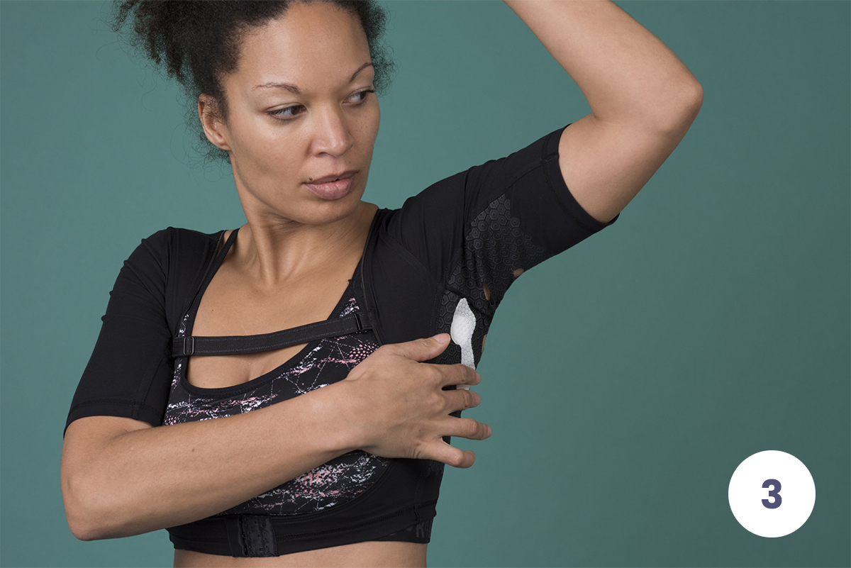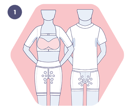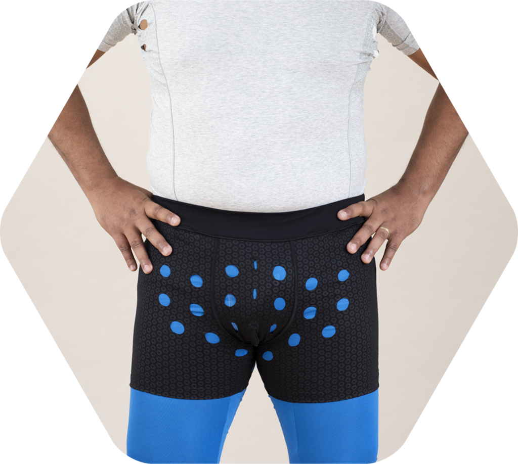 Speziell entwickelt, um Schübe von Hidradenitis Suppurativa zu behandeln, macht HidraWear klebende Verbände überflüssig, während die Verbände dennoch sicher an Ort und Stelle bleiben.
